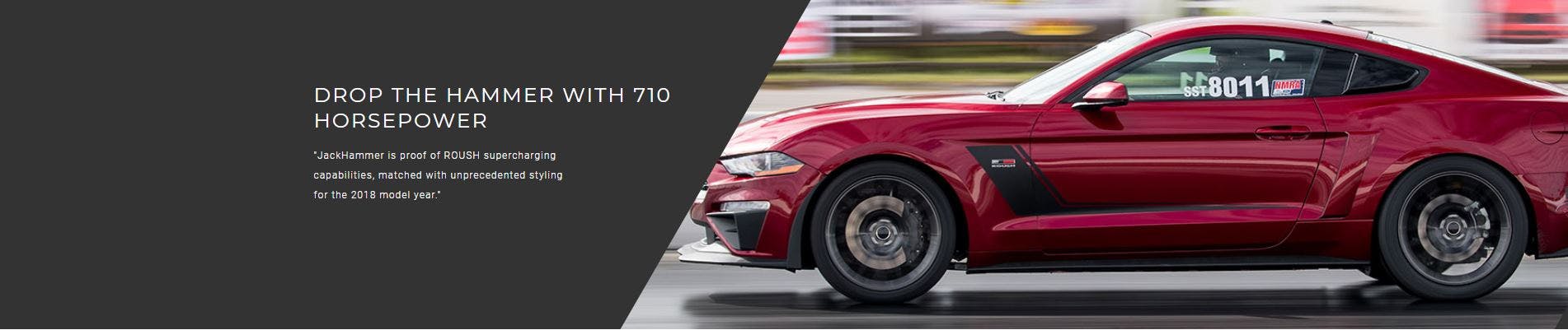 New for 2018, the ROUSH JackHammer is a special edition "to be supercharged" Mustang! Built from a Mustang GT, the JackHammer takes the hard work out of supercharging by installing the components buried deep in the engine bay, as well as machining the front engine cover, before the vehicle leaves ROUSH headquarters.
